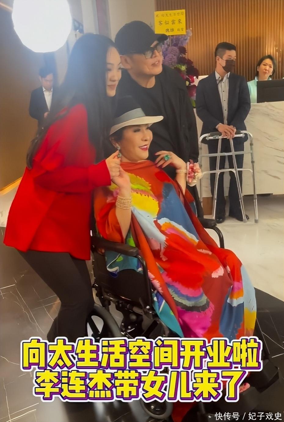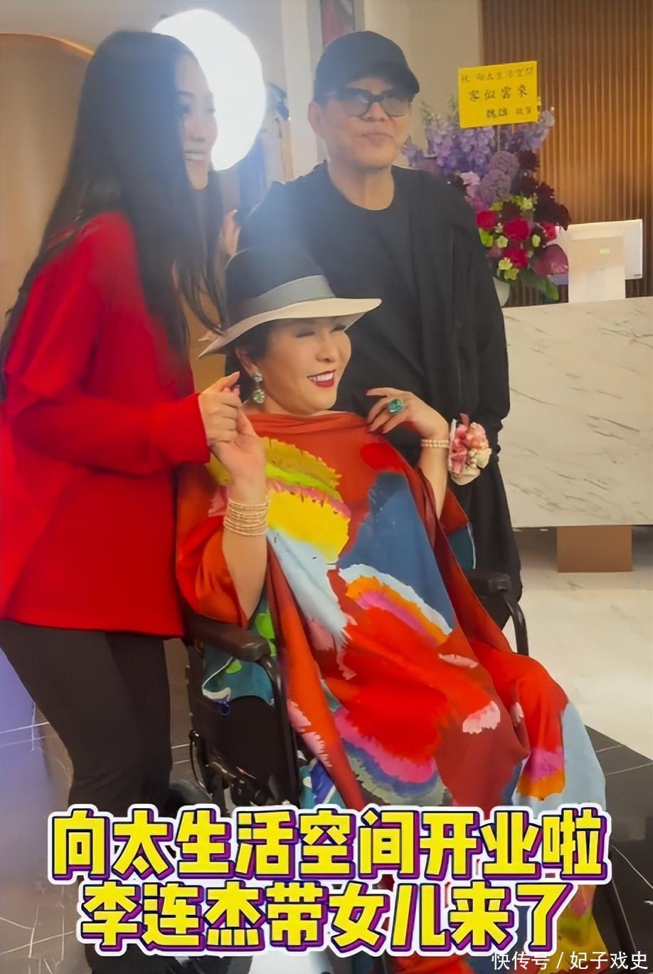 剪彩庆典铁心后,向太便坐上轮椅在店内侦察。李连杰父女也凑到向太独揽合影,向太抓住李连杰男儿的手,李连杰父女也半蹲在身子合营向太,三个东说念主看上去其乐融融,倒有种一家三口的既视感。