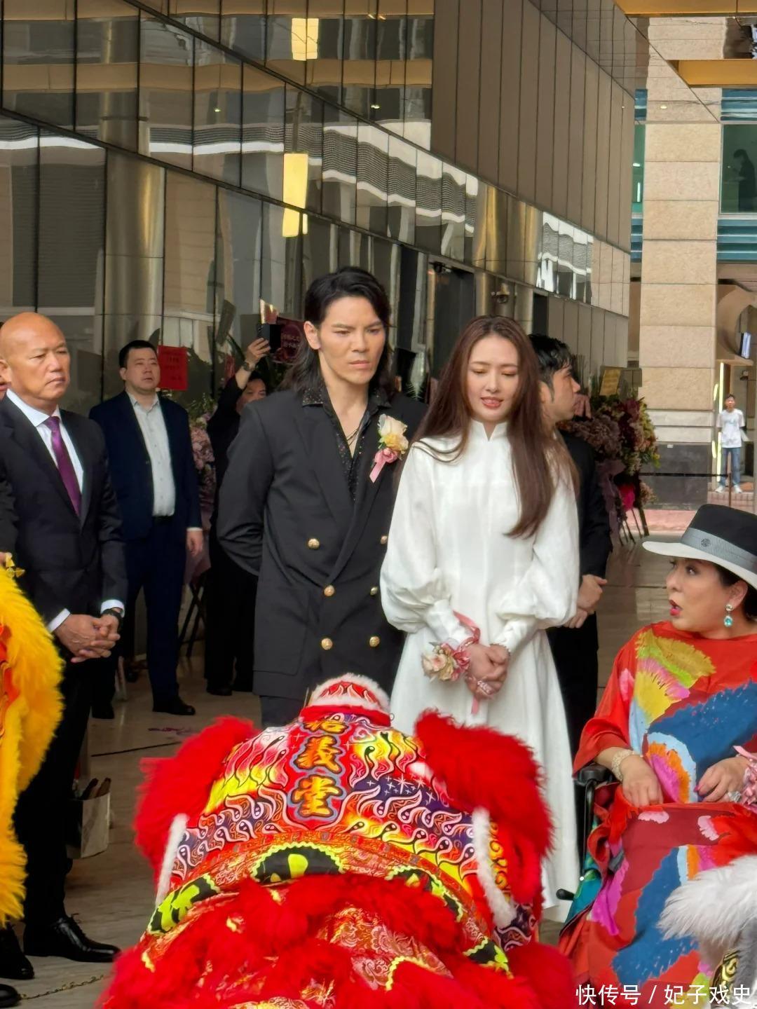 在这个蹙迫的场面,当然少不了郭碧婷和向佐。本日郭碧婷向佐两东说念主亦然盛装而来,向佐身穿玄色双排扣西装,胸前还别着一朵花;郭碧婷则是一袭白裙亮相,长发披肩;跟在向佐死后接待来宾,脸上堆满了笑颜。