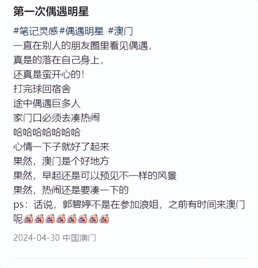 一位网友便在澳门见证了向太私房菜的开业庆典。他晒出了现场的视频,称“郭碧婷不是在插足浪姐,怎么未必辰来澳门呢”。
