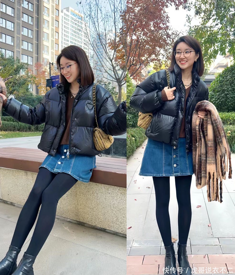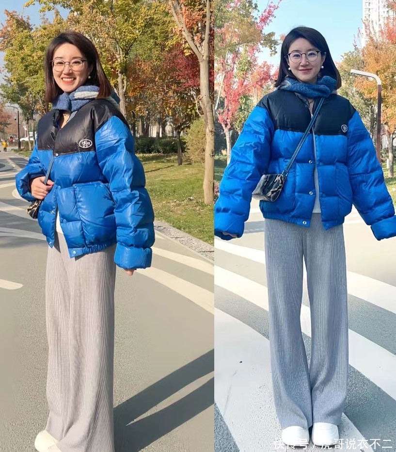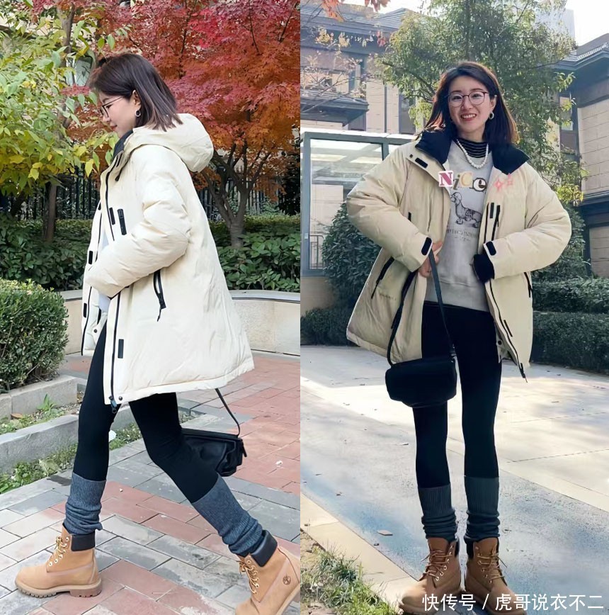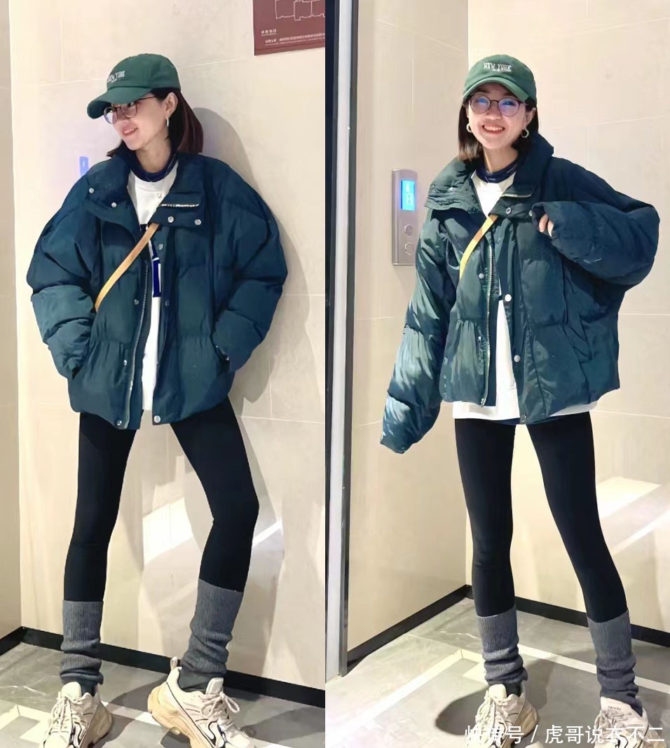 关于羽绒服的搭配,不青娥性都会明确面料带有的彭胀感,因此她们也比拟心爱“上宽下窄”的穿法,通过打底裤的收身感,与上装结束均衡遵守。